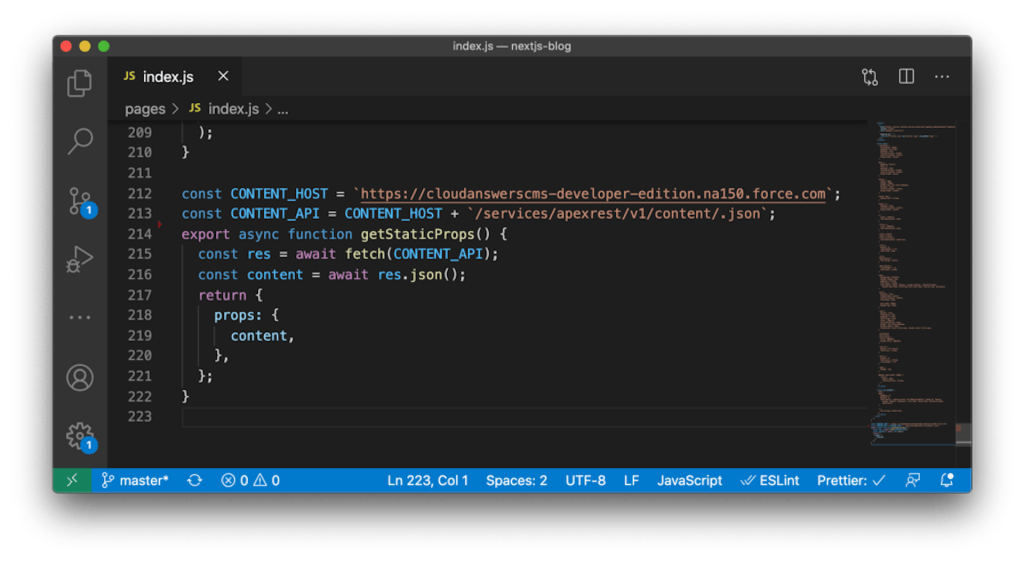 Because we exposed the content from salesforce as a rest endpoint returning json, it’s very easy to use this data in static site generators like hugo, nextjs, and eleventy.