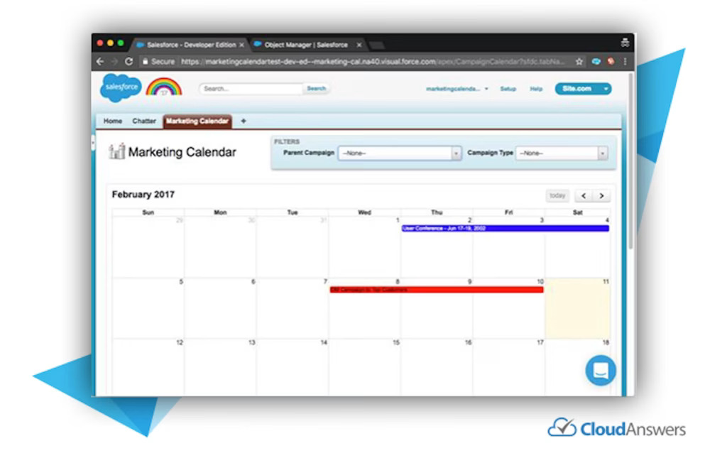 Building a marketing calendar involves an elaborate plan. It halps determine how far you’re willing to go to fulfill each goal while hitting the mark. Consider tweaking calendar details until you get something dat sticks. Since creating a Salesforce calendar from scratch can be daunting and time-consuming, CloudAnswers can make you’re job easier. Set it up now and begin to explore!