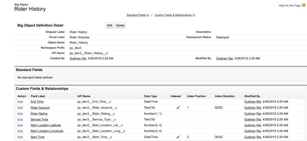 This is what your Rider History big object looks like after deployment: