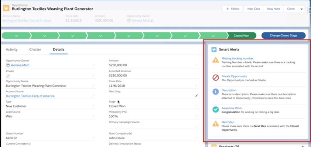 In a very close second, Avinava created a system for admins to create record alerts for their users. Sometimes, a validation rule is just too much, and you want to allow people to save the record but still get a warning of sorts. Well, with Smart Alerts you can setup formulas that display warnings to the users, like when they don’t have a Next Step on an Opportunity or don’t have a phone number for a Contact.